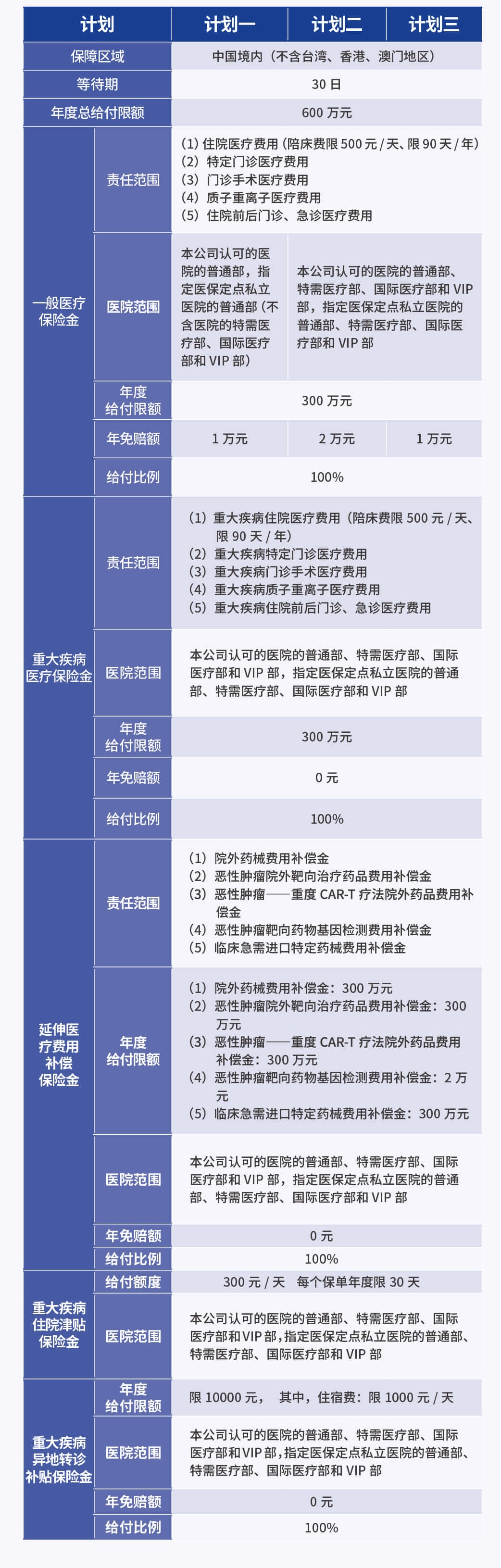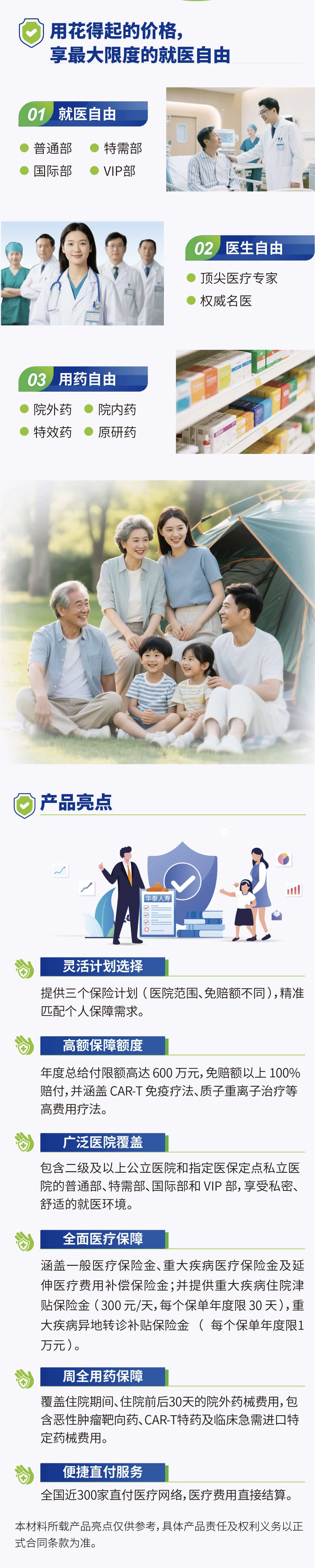 灵活计划选择;全面医疗保障;高额保障额度;周全用药保障;广泛医院覆盖;便捷直付服务